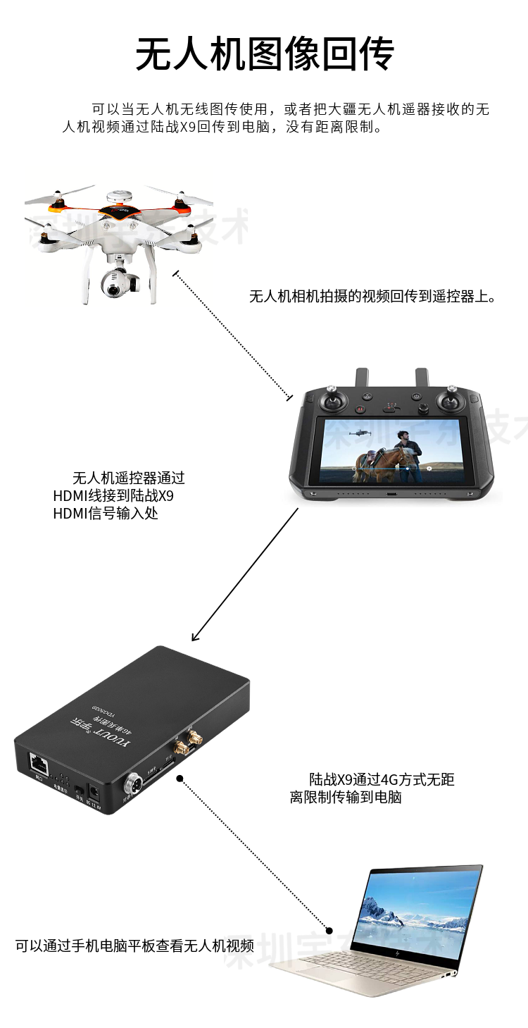 陸戰(zhàn)X9是采用 H.265 編碼技術(shù),兼容 H.264,低延遲,通過4G把HDMI視頻信號傳輸?shù)街辈ブ行摹⒅笓]部或監(jiān)控中心。內(nèi)置電池,北斗/GPS定位系統(tǒng),支持雙向語音對講,廣泛應(yīng)用在公安、武警、消防、人防、近海營救、電力、水利、地震、礦山野外施工作業(yè)、石油、化工、建筑、碼頭、檢驗檢疫、城市交通、高速公路監(jiān)管等高清晰視頻應(yīng)急指揮行業(yè)。尤其適用無人機高清圖傳和微波高清圖傳,以及 4G 單兵圖傳。