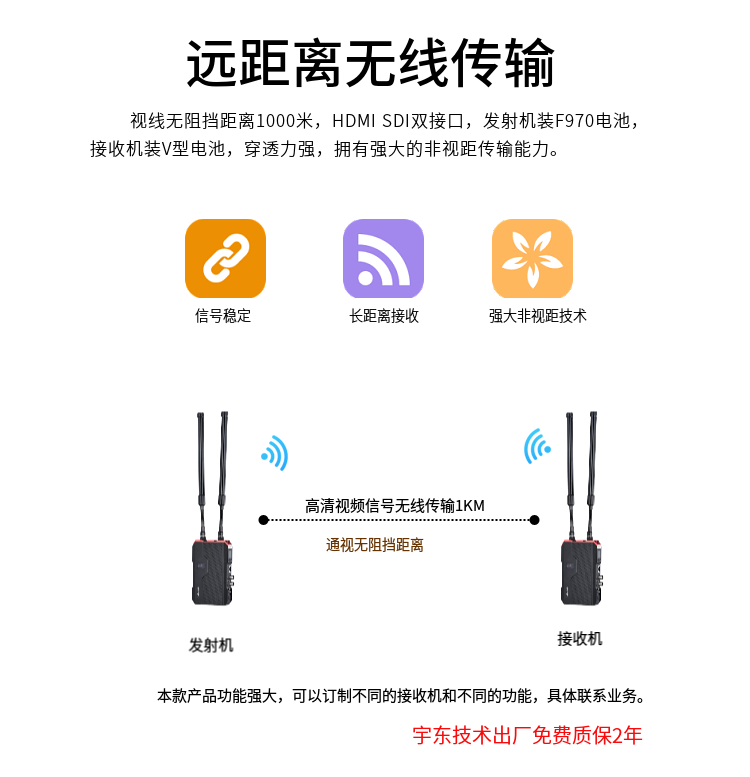 此產品支持一路視頻同時輸入,且每路視頻最高分辨率可到1080P/60Hz,一路視頻共用一個無線信道,大大節約了頻譜資源,為用戶多機位拍攝提供了極大便利。