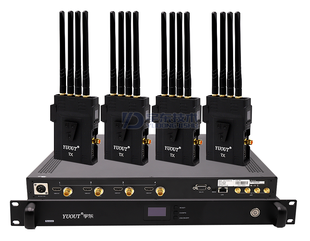 極光2000U一拖四無線圖傳采用的是4X4 MIMO方案,本產品包含4臺發射器和1臺接收器(集成了4個接收模塊,可以同時接收4臺不同發射機的視頻信號),并且都配備了3G/HD SDI接口和全高清HDMI接口。可以通過軟件配置的方式來更改天線的工作頻率,以適應全球不同區域的無線傳輸要求。 同時,在發射器側面和接受器正面,配備了通信通道選擇按鍵,可以手動配置11個不同的通信通道,非常方便。